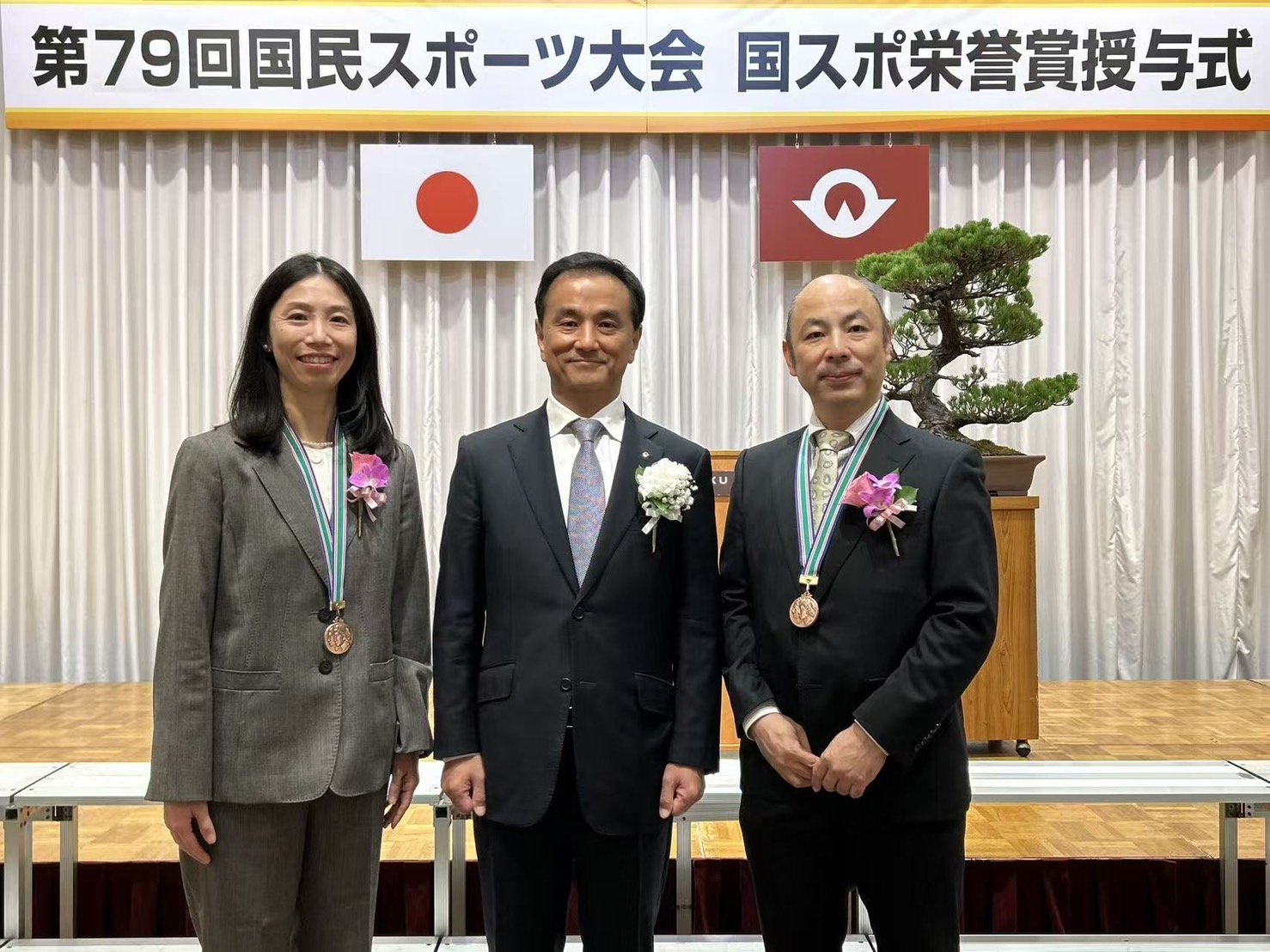 山口県より国スポ栄誉賞を授与 皆様、こんにちは。 2025年11月20日木曜日に、山口県にて、第79回国民スポーツ大会で入賞した監督・選手を表彰する国スポ栄誉賞の授与式が行われました。 当会では、国スポ・武術太極拳(公開競技)・シニア・ペア24式太極拳で3位入賞した、綿谷昌明・藏田紀子ペアがメダルを授与されました。 大変おめでとうございます。今後ますますのご活躍を期待しております。 « 国スポ2025第3位入賞おめでとう!